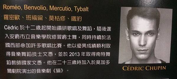 因為他的膝蓋受傷而無法繼續演出,因此改由:Cedric Chupin演出
