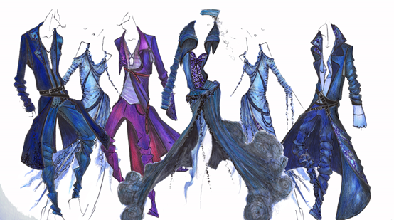 以藍色系以及牛仔布料為主,表現比較飄逸的風格