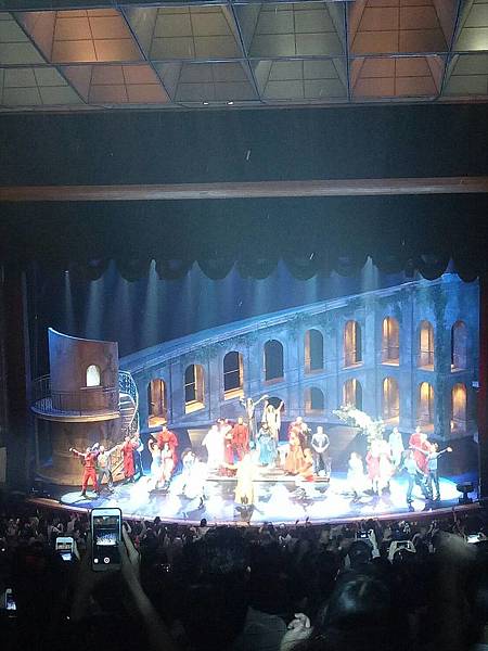 可能受限於場地太小,新版的道具走位沒有舊版的多,建築物也沒有那麼雄偉,只是多了背景的星空還滿美麗的 |